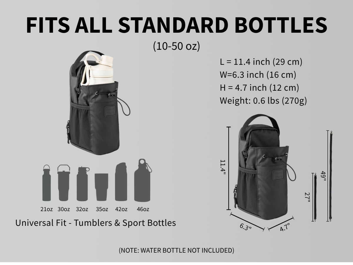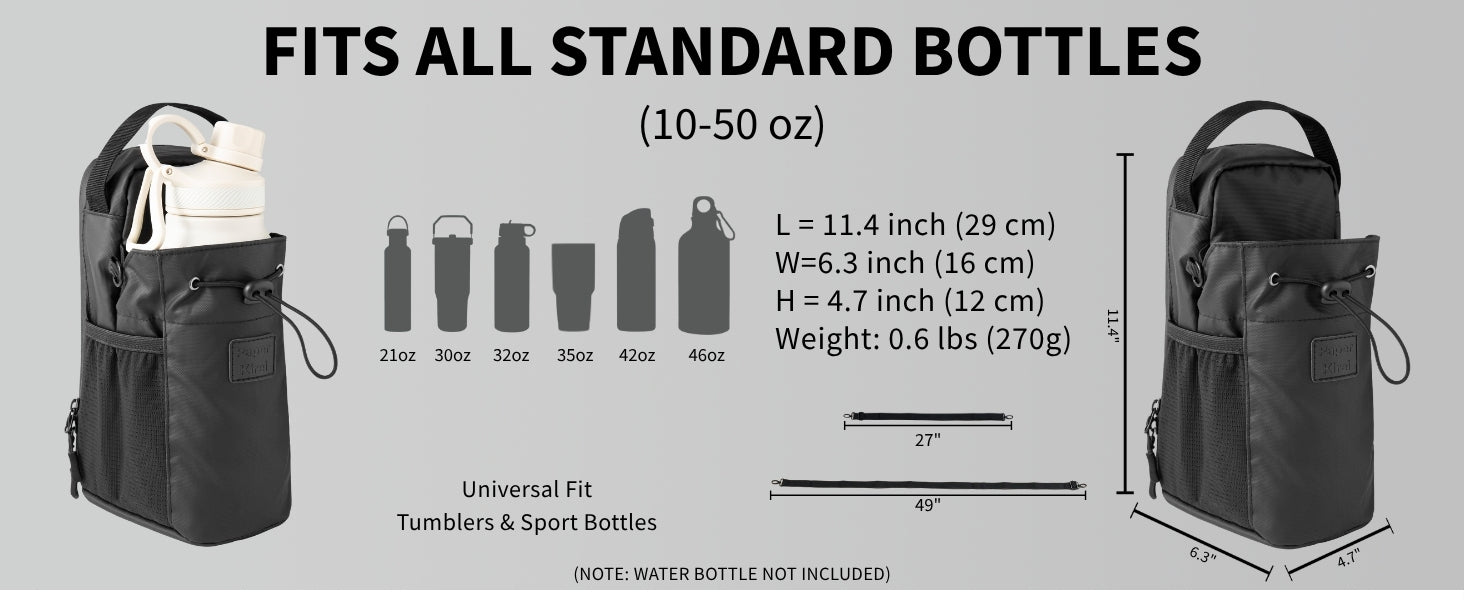 - Bottle Slot: ~6.2 inches (16 cm), fits up to a 150oz (5kg) stainless steel vacuum-insulated bottle